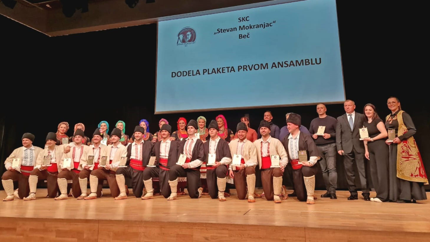 Prema rečima Saše Božinovića plakete su u prvom delu koncerta dobili bivši i sadašnji predsednici, zaslužni članovi, austrijske institucije, ali i sponzori koji su sve ove godine nesebično pomagali. Među nagrađenima su i prvi predsednik Dragoljub Neksojević, kao i Jovica Stanojević, koji su uz Lazara Bilanovića, koji je i kum “Mokranjca” osnivači društva.