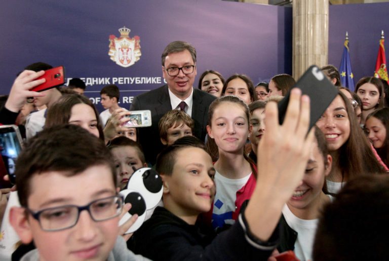 24. maja 2019. – Predsednik Republike Srbije Aleksandar Vucic primio je decu ucesnike Svesrpskog decjeg sabora. FOTO TANJUG/ SAVA RADOVANOVIC/ bg