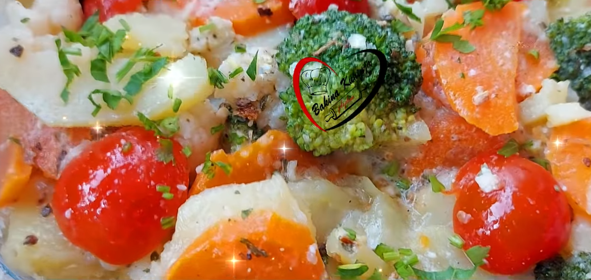 Krompir i šargarepu očistiti i iseći na kolutove. Karfiol i brokoli pokidati na cvetove. Šampinjone oprati, ako su krupni iseći na pola. Naliti sve sa vodom i bariti 5-6 min, ne više. Izvaditi u vanglu polako rešetkom da se ohladi.