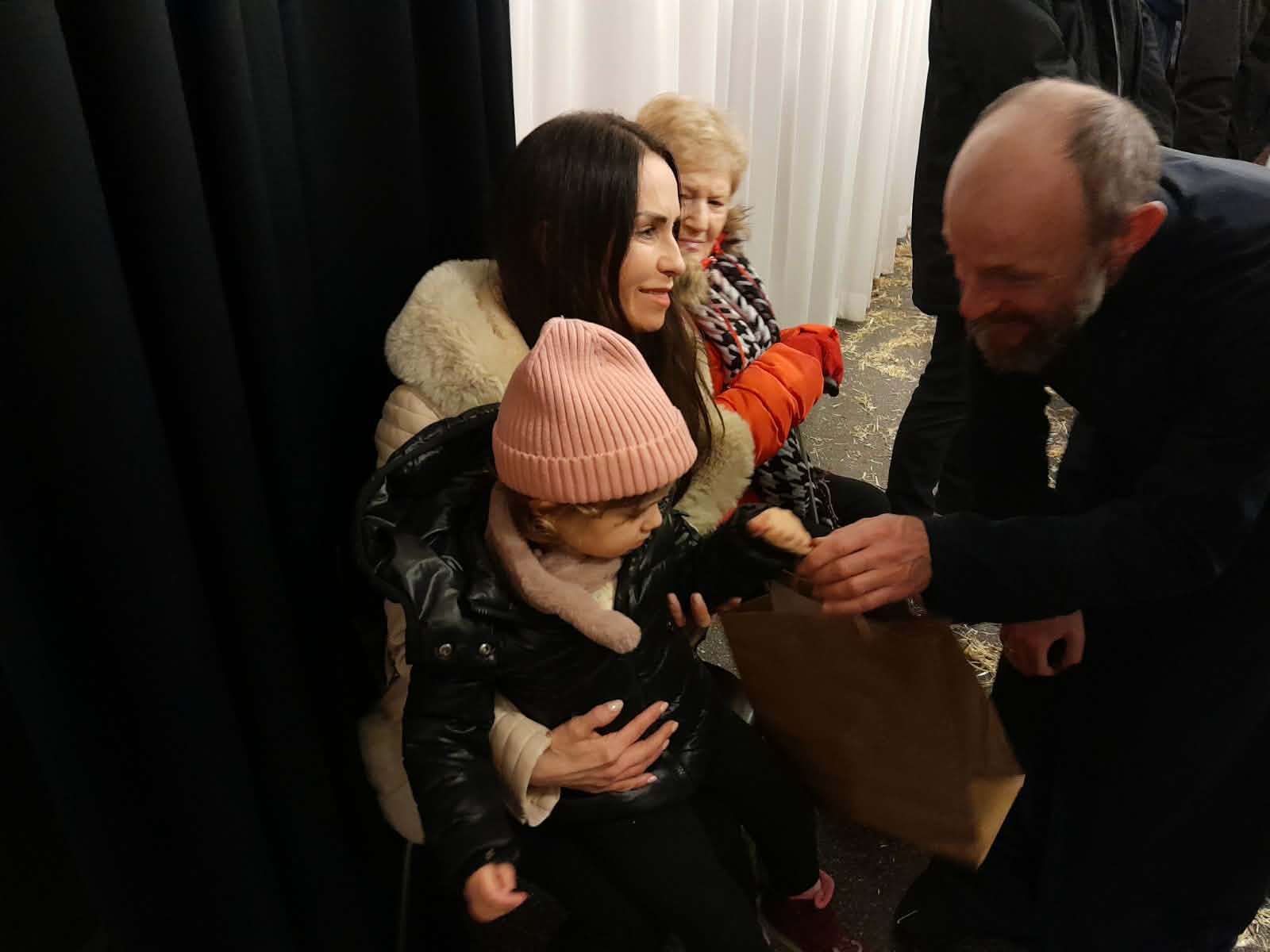 Tako je Dragiša Jerkić donio poklon trogodišnjoj Maleji koja je sa mamom Julijanom i tatom Zlatkom Tomićem stigla nešto kasnije na pijukanje. Na prodaji predbožićnih obeležja angažovan je bio i ove godine Stanko Cvijanović iz Dahaua rodom sa Trebave u Republici Srpskoj. Veliki badnjak hrastovog drveta “čuvao” je Radivoj Malić a rado se pozdravio sa starim prijateljem Njegošem Vukovićem.