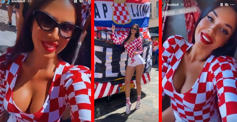 Najpoznatija navijačica Hrvatske Ivana Knol u ponedeljak je stigla na meč osmine finala protiv Španije i odmah je dodatno podigla temperaturu pred duel sa popularnom Furijom.