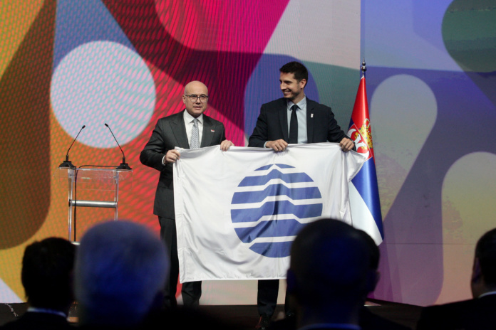 Zastavu specijalizovane izložbe EXPO, predsedniku Vlade Srbije i izaslaniku predsednika Republike Milošu Vučeviću, uručio je direktor preduzeća EXPO 2027 Dušan Borovčanin, a svečanost primopredaje održana je u Sava centru u prisustvu generalnog direktora Međunarodnog biroa za izložbe Dimitrija Karkenzesa.