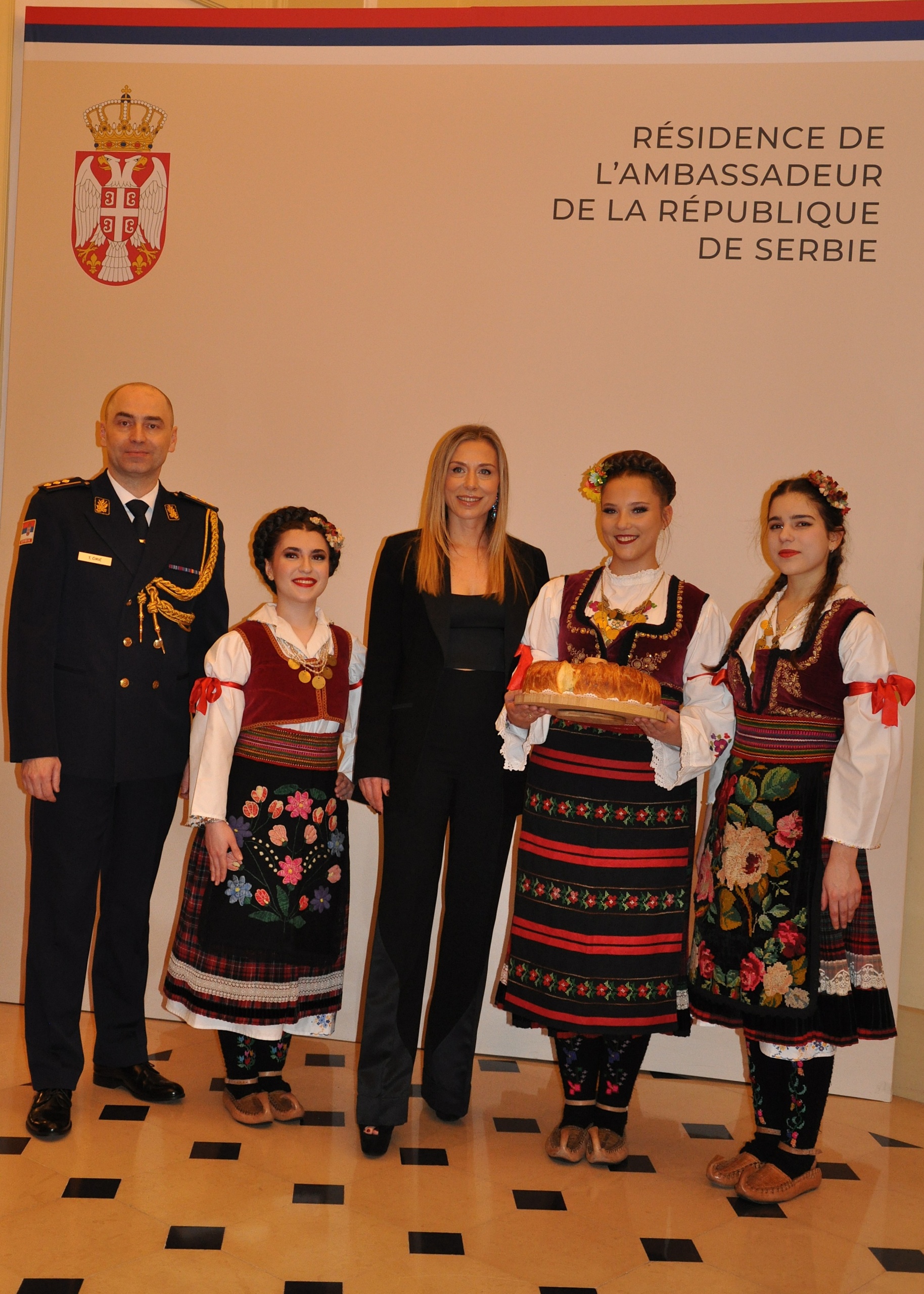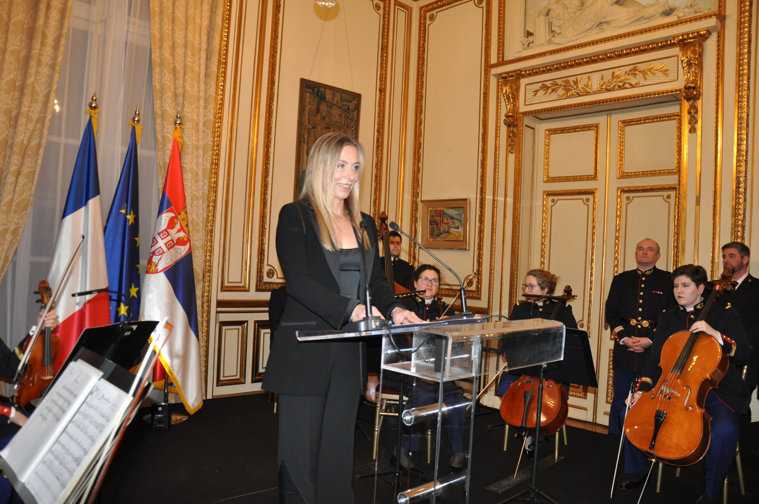 Povodom Dana državnosti i Dana oružanih snaga Republike Srbije, kao i obeležavanja 15-godišnjice strateškog partnerstva između Republike Srbije i Francuske Republike, njena ekselencija gospodja Ana Hrustanovic,ambasadorka Srbije u Parizu,organizovala prijem u rezidenciji ambasade koja je bila osvetljna u boje srpske trobojke,