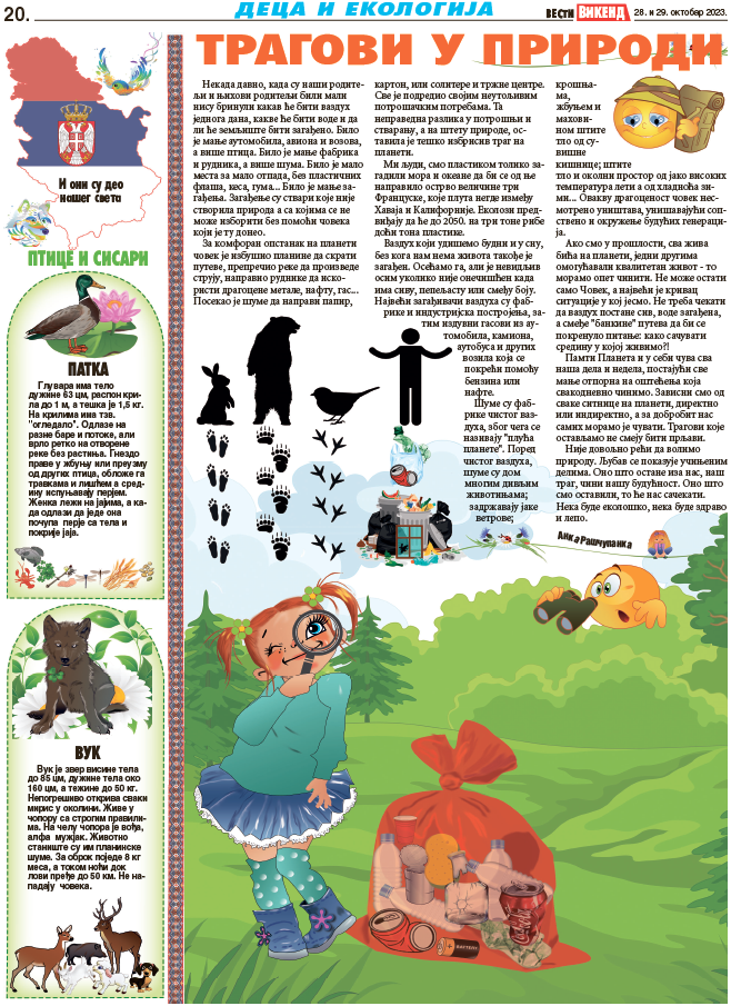 Nekada davno, kada su naši roditelji i njihovi roditelji bili mali nisu brinuli kakav će biti vazduh jednoga dana, kakve će biti vode i da li će zemljište biti zagađeno. Bilo je manje automobila, aviona i vozova, a više ptica. Bilo je manje fabrika i rudnika, a više šuma. Bilo je malo mesta za malo otpada, bez plastičnih flaša, kesa, guma… Bilo je manje zagađenja. Zagađenje su stvari koje nije stvorila priroda a sa kojima se ne može izboriti bez pomoći čoveka koji je tu doneo.