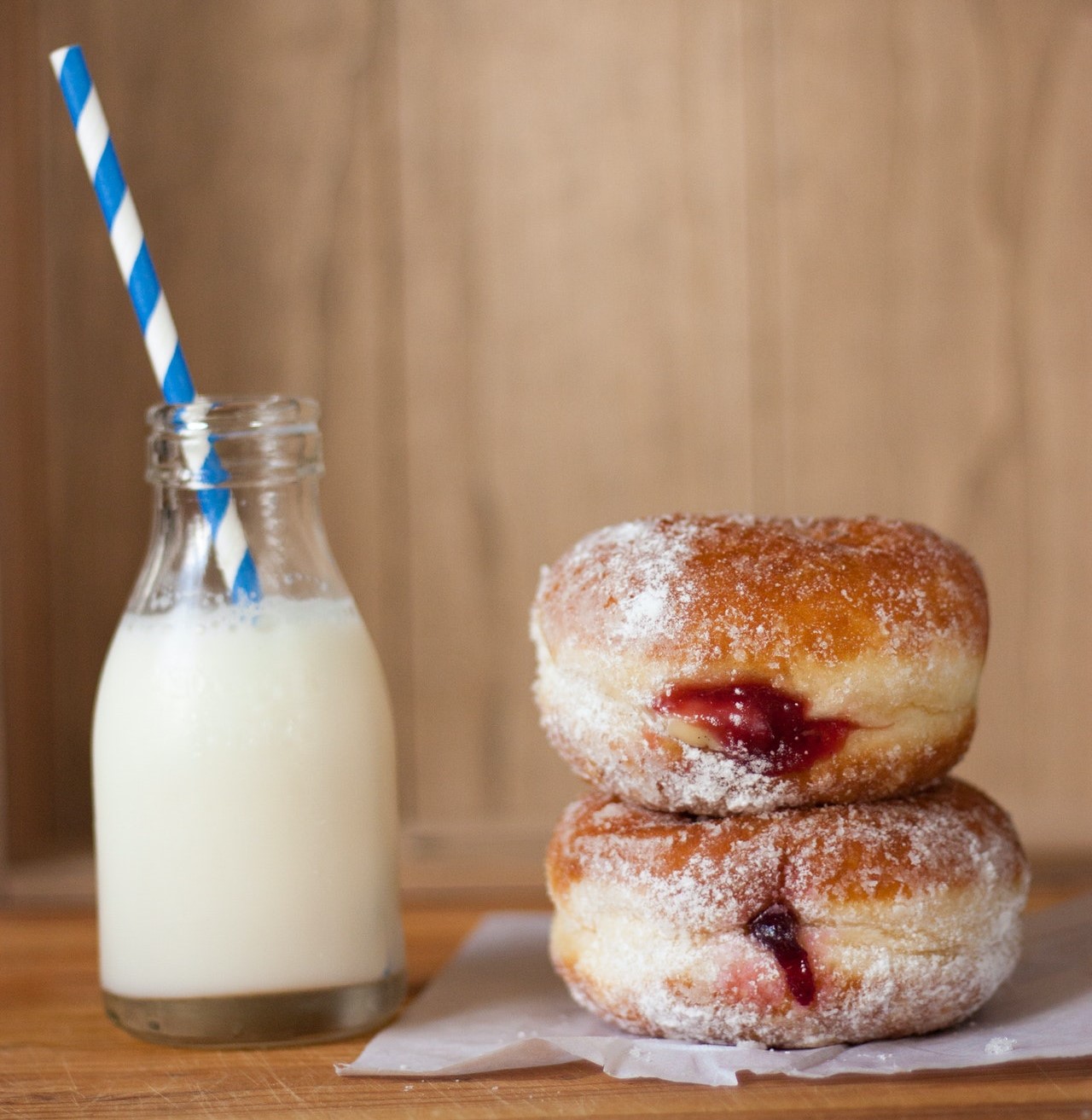Kvasac pomešajte s kašikom brašna, šećerom, 100 mililitara toplog mleka i ostavite da naraste. Ostatku brašna dodajte puter, limunovu koru, žumanca, celo jaje, narasli kvasac i preostalo toplo mleko. Testo dobro umesite pa prekrijte čistom krpom i ostavite na toplom 40 minuta. Zatim ga premesite i stavite na radnu površinu posutu brašnom. Testo rastanjite na debljinu od jednog centimetra. Čašom vadite testo i na svaki drugi kružić stavite kašičicu džema pa preklopite slobodnim kružićem i spojite. Krofne ostavite još pola sata, a zatim ih pržite poklopljene na vrelom ulju. Posle nekoliko minuta ih okrenite i pržite otklopljene. Gotove krofne odložite na papirne ubruse da upiju višak masnoće, a kad se malo ohlade, pospite ih šećerom u prahu.