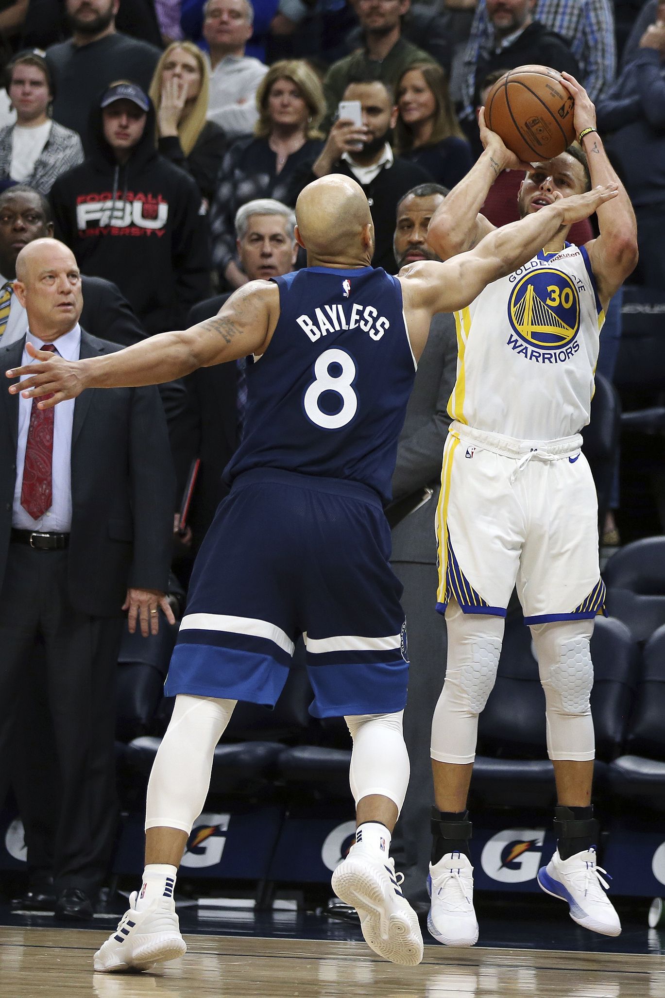 Nikakav problem. “Snajperista” Kari (37 poena) pogađa vrlo težak šut iz ugla, sa korakom unazad, preko ruke Bejlesa. Majstorstvo. Ostadoše desetinke na satu i napad za Minesotu. Pas za alej-up ka Karl-Entoniju Taunsu je daleko van domašaja, ali su opet sudije dosudile na štetu Durenta. Faul superzvezde Voriorsa jer je držao ruke na struku gorostasnog igrača Vukova. Tauns je pogodio jedno od dva bacanja dovoljno da se osigura teško izborena pobeda protiv favorita.