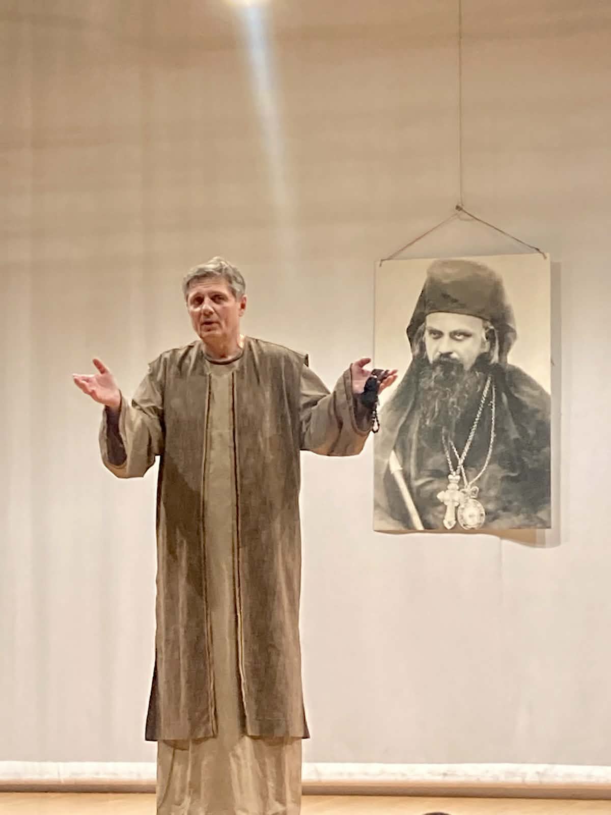 Poznati glumac, režiser i profesor glume Nebojša Dugalić gostovao je u subotu neveče u Minhenu sa monodramom “Reči o svečoveku” po tekstu Sv. Vladike Nikolaja Velimirovića.