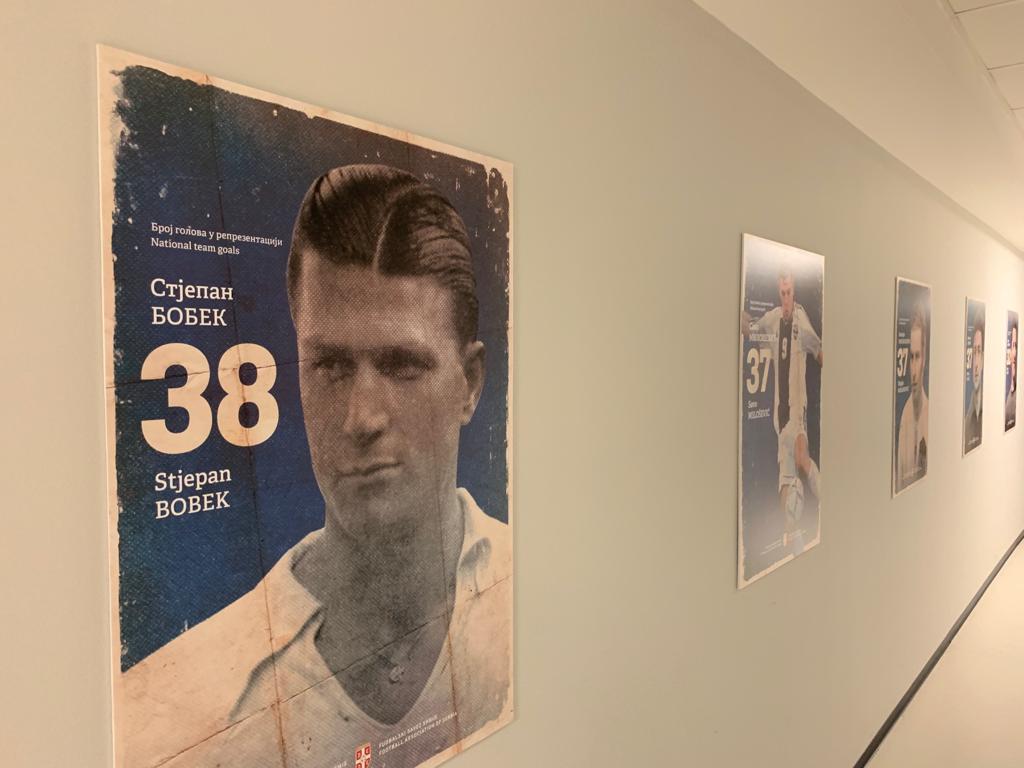 Na zidovima su postavljeni portreri reprezentativaca koji imaju najviše utakmica i koji su dali najviše golova. Među aktivnima u tom društvu su Aleksandar Kolarov (88 mečeva) i Aleksandar Mitrović (31 gol).