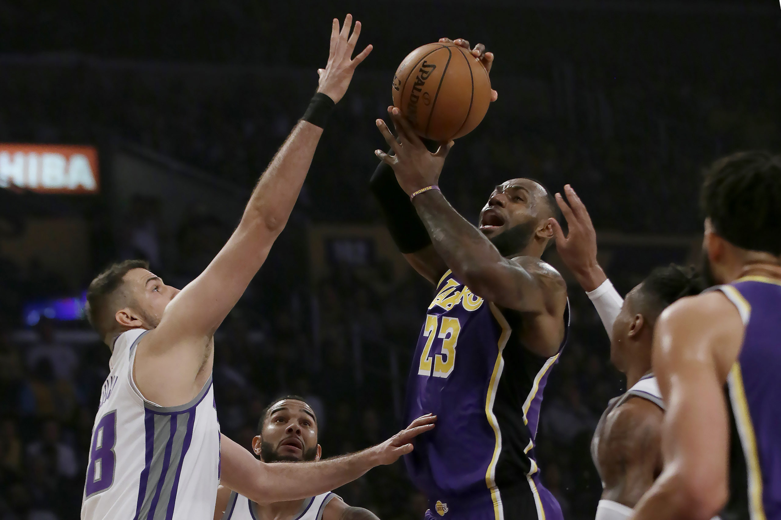 Zvezda Lejkersa Lebron Džejms imao jedan od najatraktivnijih poteza na meču NBA lige protiv Sakramenta.
