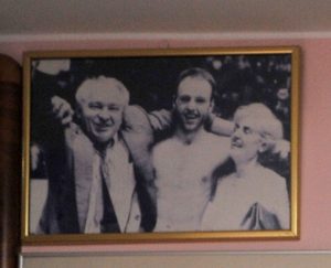 Posle bogate igračke karijere, posebno u Nemačkoj, usledila je i trenerska. Dok Slađana pokazuje na poster iz Kelna kada je osvojio prvi trenerski trofej, Sale nastavlja: