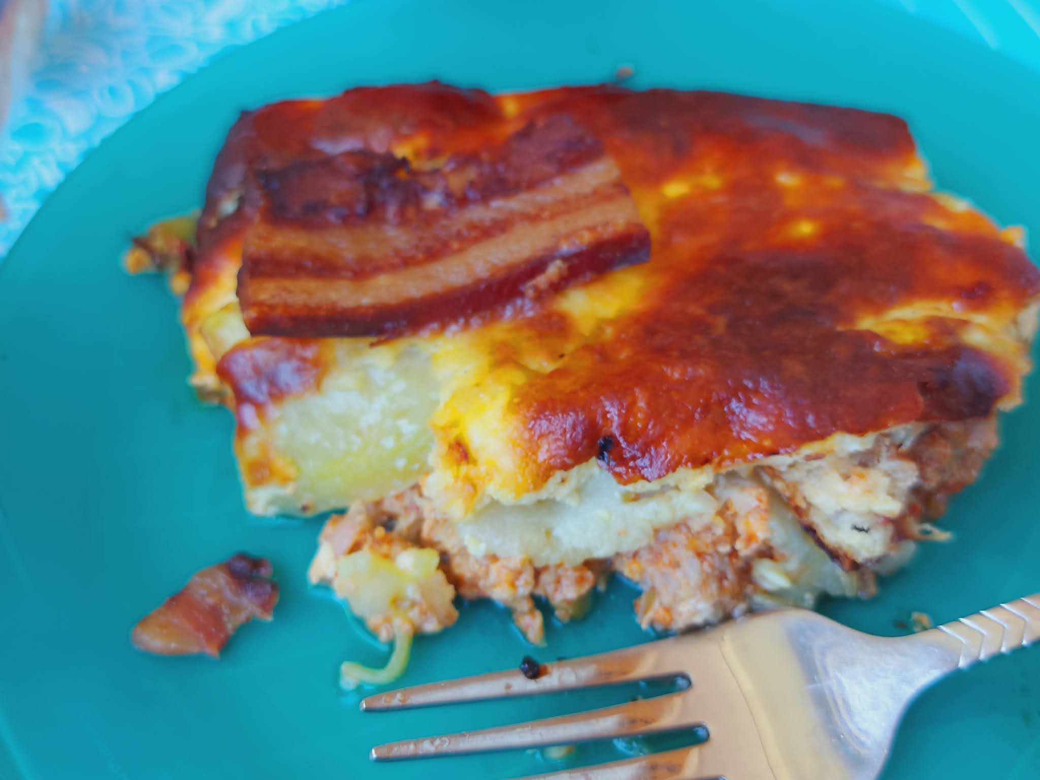 Po želji na vrh poređati suvu slaninu listiće. Peći na 220 stepeni oko sat vremena. Fantazija od ukusa.. Predobro..Prijatno..