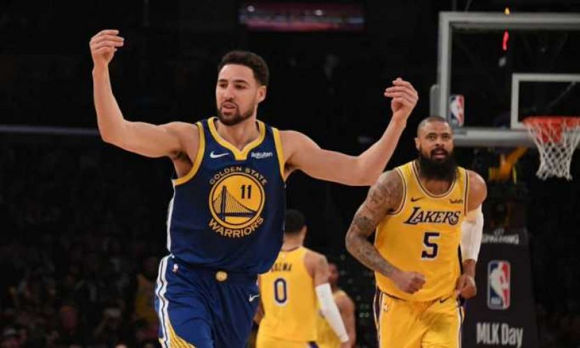 Klej Tompson nanizao je 10 trojki bez promašaja u ubedljivoj pobedi Golden Stejta protiv Los Anđeles Lejkersa.