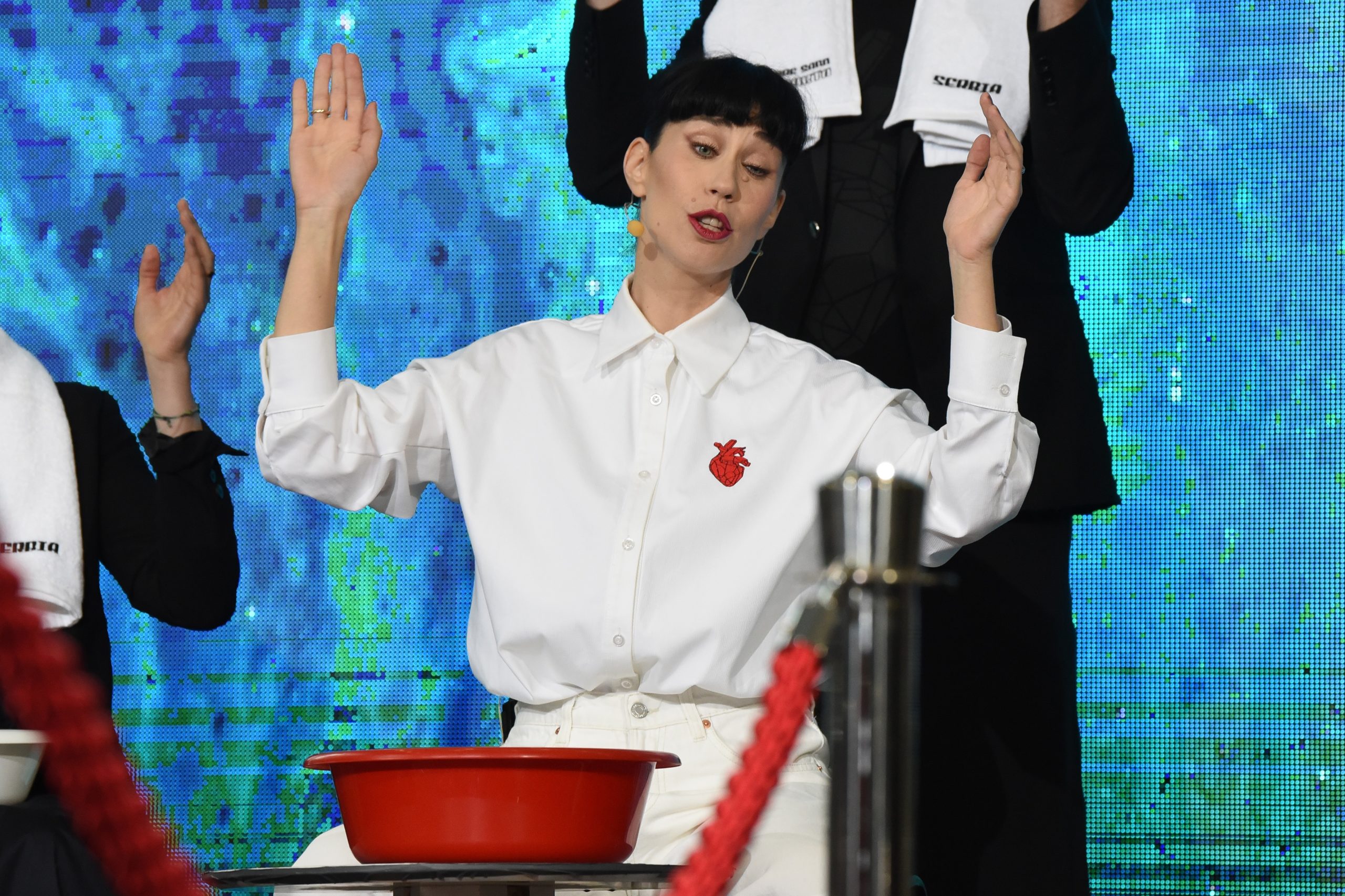 Na svečanosti u Takovskoj ulici, ambasador Italije Karlo Lo Kašo je uručio zastavu njegove zemlje Konstrakti, koja je uzvratila poklonivši mu peškir, a potom je i direktor RTS-a Dragan Bujošević darovao pevačici srpsku zastavu.