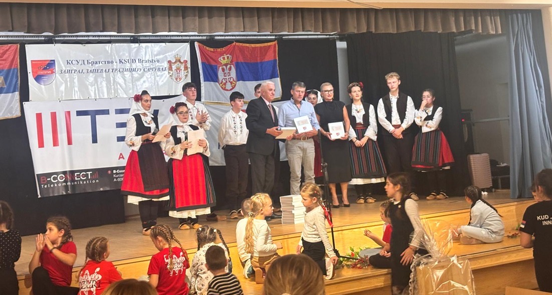 Na to su prisutni u sali i gosti iz Srbije velikim aplauzom pokazali da ovakve manifestacije za njih mnogo znače i da na taj način žele da svojoj deci ostave u nasleđe svoju baštinu nasleđenu u matici Srbiji.