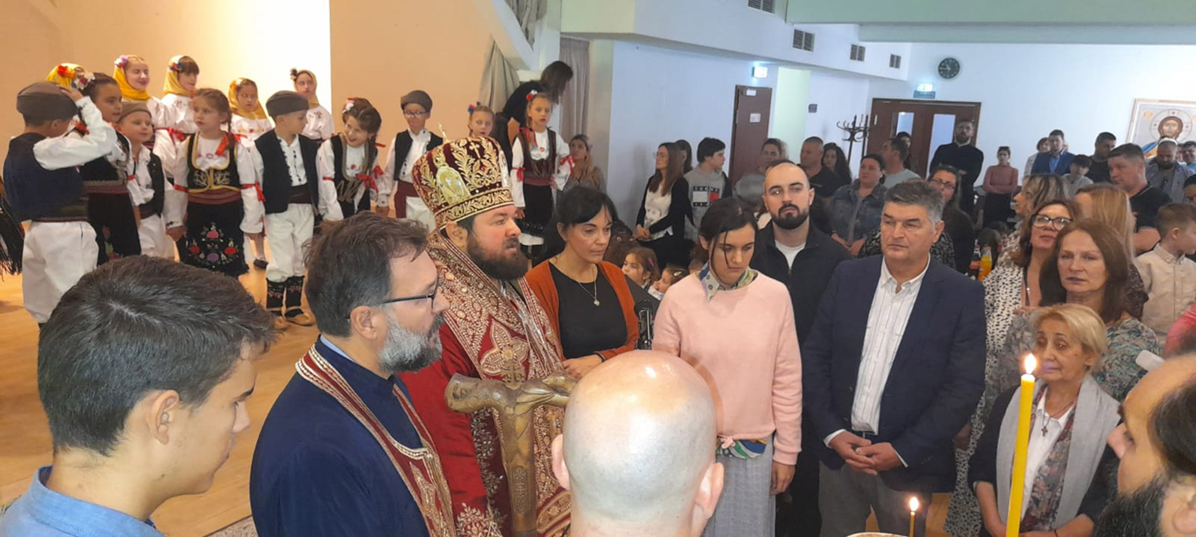 Svečarsku atmosferu proslave i zajedništva krasili su i upotpunili, koliko divno pripremljena trpeza toliko i naše pesme u izvođenju orkestra Dragana Kostića Šajke. Ipak, iskreno oduševljenje svih prisutnih svojom igrom i nastupom zadobili su članovi KUD Moravac iz Diseldorfa pod umetničkim vođstvom Sandre i Pavla Aničića. Pre nastupa mališane iz Moravca pričestio je otac Nebojša Rakić.