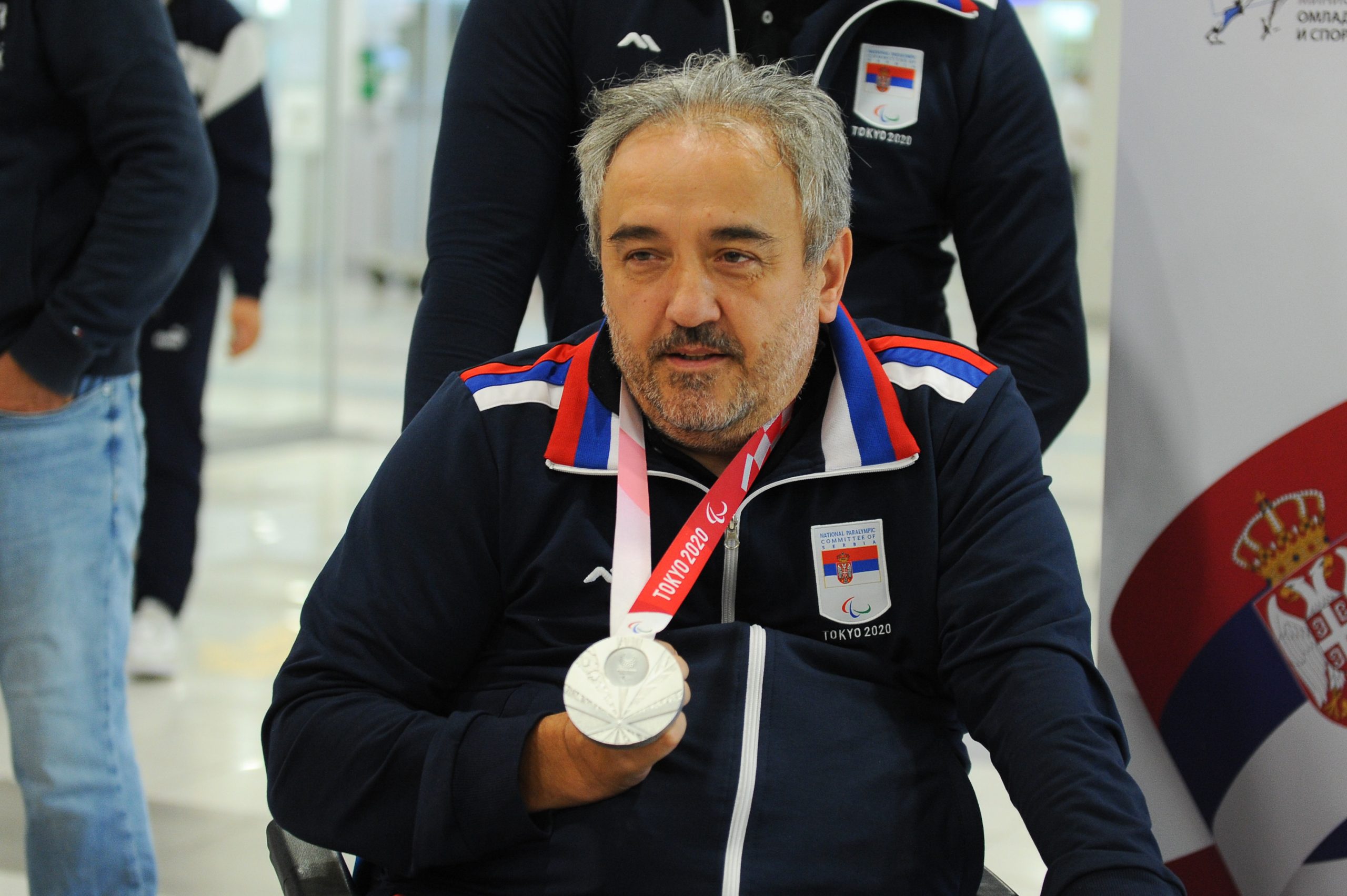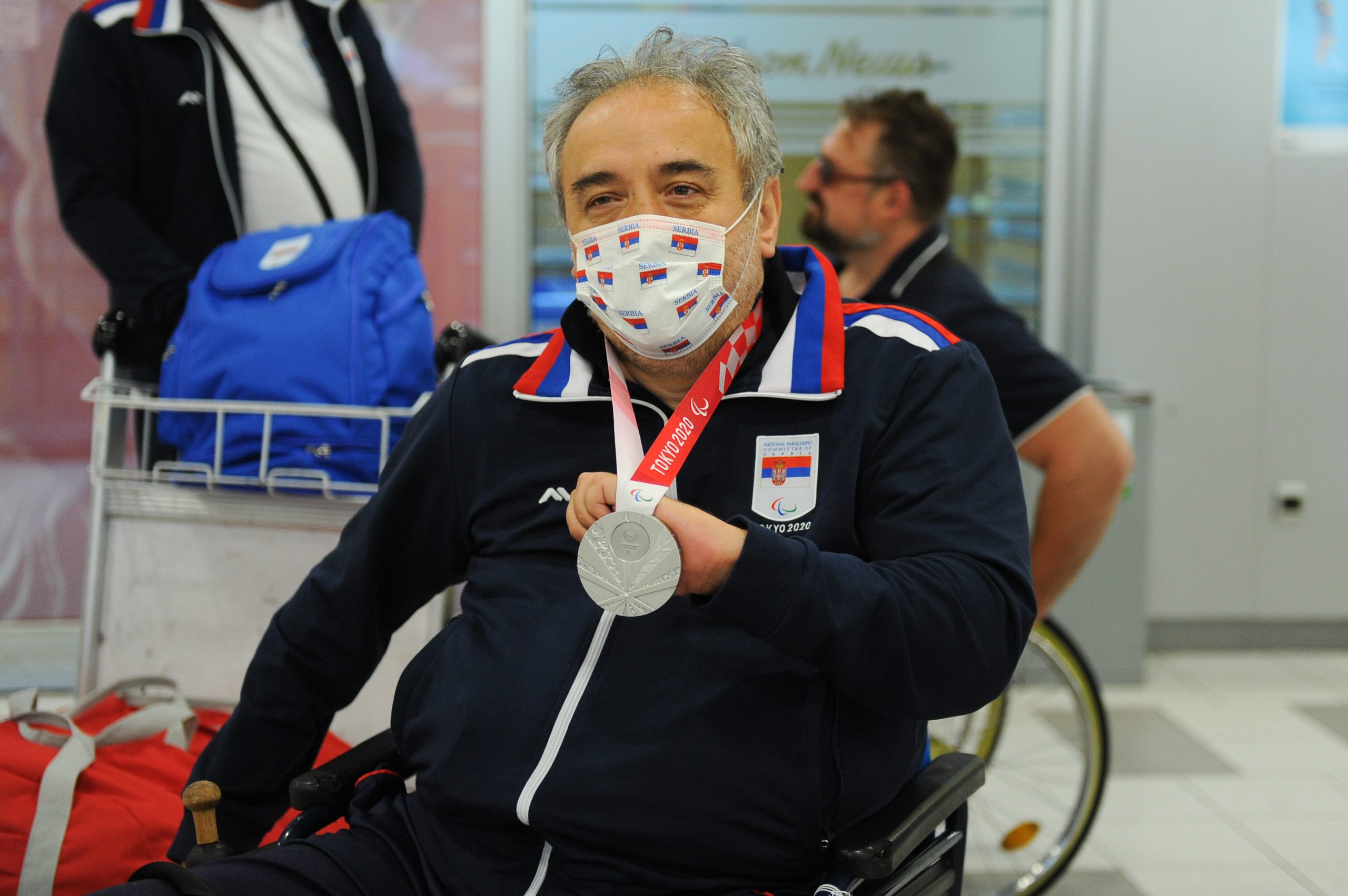 Dimitrijević je u Tokiju osvojio srebrnu medalju u disciplini bacanje čunja, u klasi F51, a na beogradskom aerodromu bio mu je priređen doček.