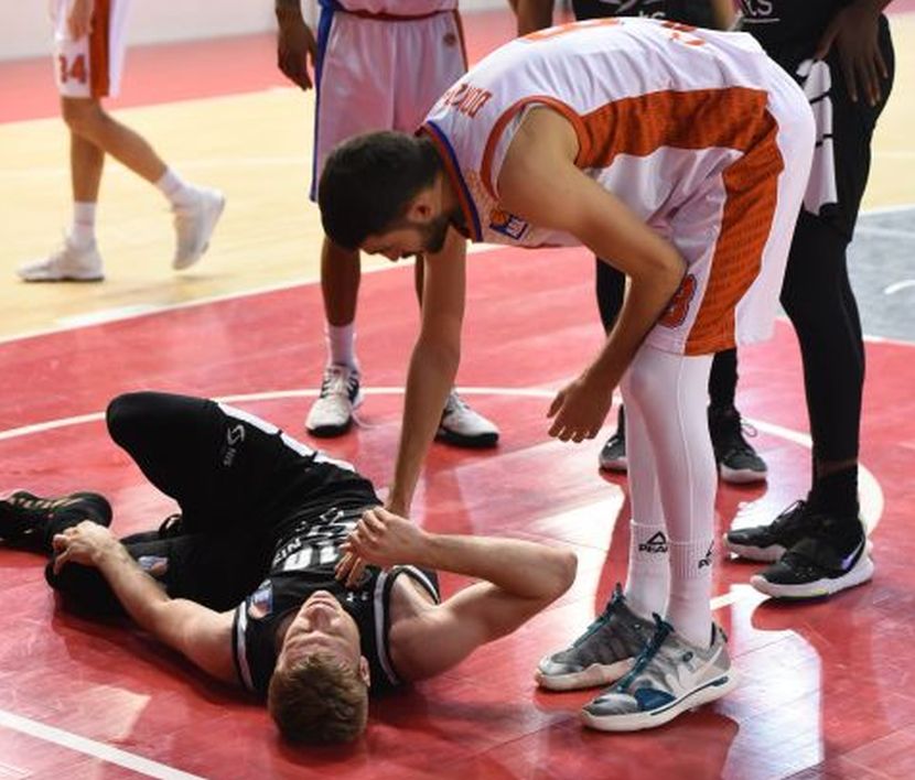 Košarkaš Partizana Ognjen Jaramaz vratio se na parket posle jednomesečne pauze zbog preloma prsta desne ruke, a ponovo se povredio tokom utakmice sa Borcem u Čačku u okviru ABA lige.