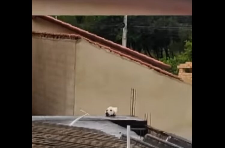 U TikTok video-snimku postavljenom na Redditu, vidi se nešto što izgleda kao beli pas sa tamnim nosem i tamnim ustima koji naslanja glavu na ivicu krova.