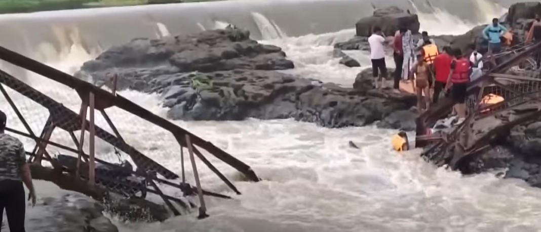 Most je pao u reku Indrajani dok se skoro 125 turista okupilo na njemu da posmatraju bujanje reke, prenosi „India Today“.