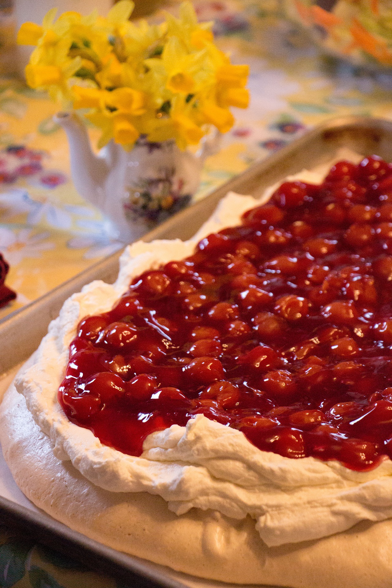Belanca umutite u čvrst sneg, postepeno dodajte vanilin šećer i šećer u prahu uz mešanje i na kraju gustin pomešan s malo šećera i limunovog soka. Pripremljenu smesu izručite na tepsiju obloženu papirom za pečenje, koji ste prethodno namazali uljem i formirajte krug (prečnik 22 cm). Pecite u rerni zagrejanoj na 120°C oko 90 minuta. Pečenu koru ostavite da se ohladi u rerni. Spolja mora biti hrskava, a iznutra svetle boje. Koru premažite šlagom i po njoj rasporedite krem od višanja. Pre posluživanja neka malo odstoji u frižideru.