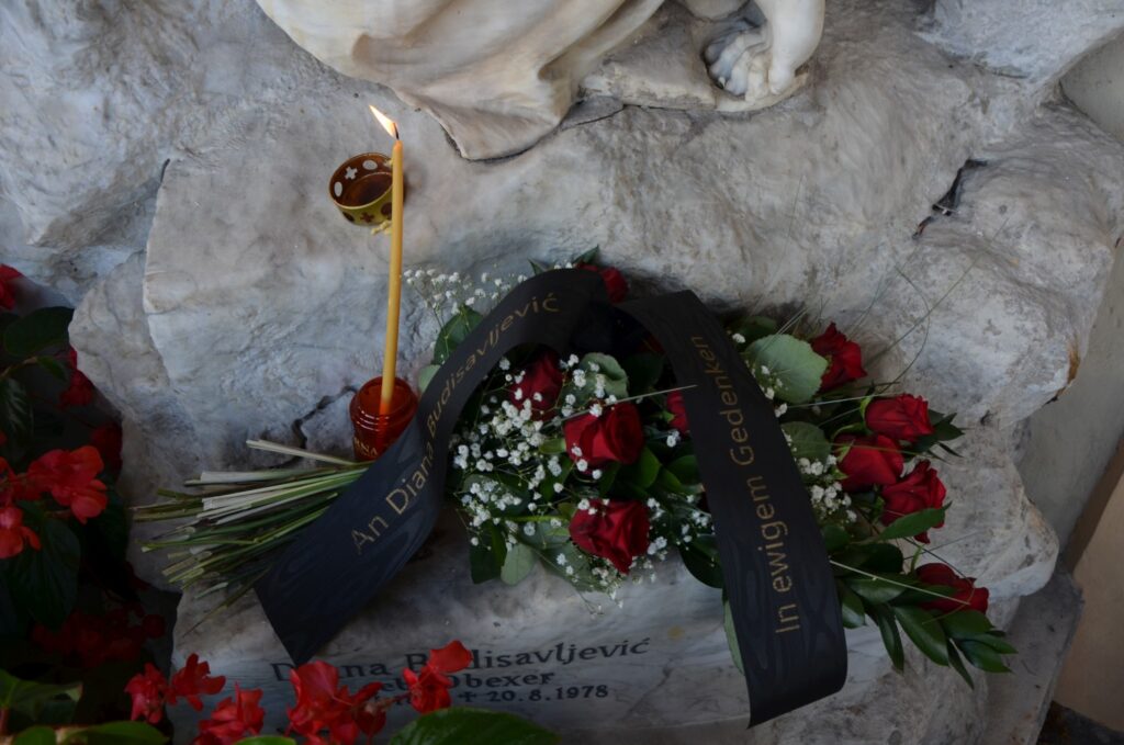 Zatim se krenulo od crkve prema Zapadnom gradskom groblju gde je Diana sahranjena na porodičnom grobu porodice Obekser ispod svoda pod brojem 48. Tamo su Zoran i Luka Mirčeta, upalili sveću i položili cveće u znak zahvalnosti i večnog pomena Diani Budisavljević i njenim pomagačima u ime svih učesnika šetnje.