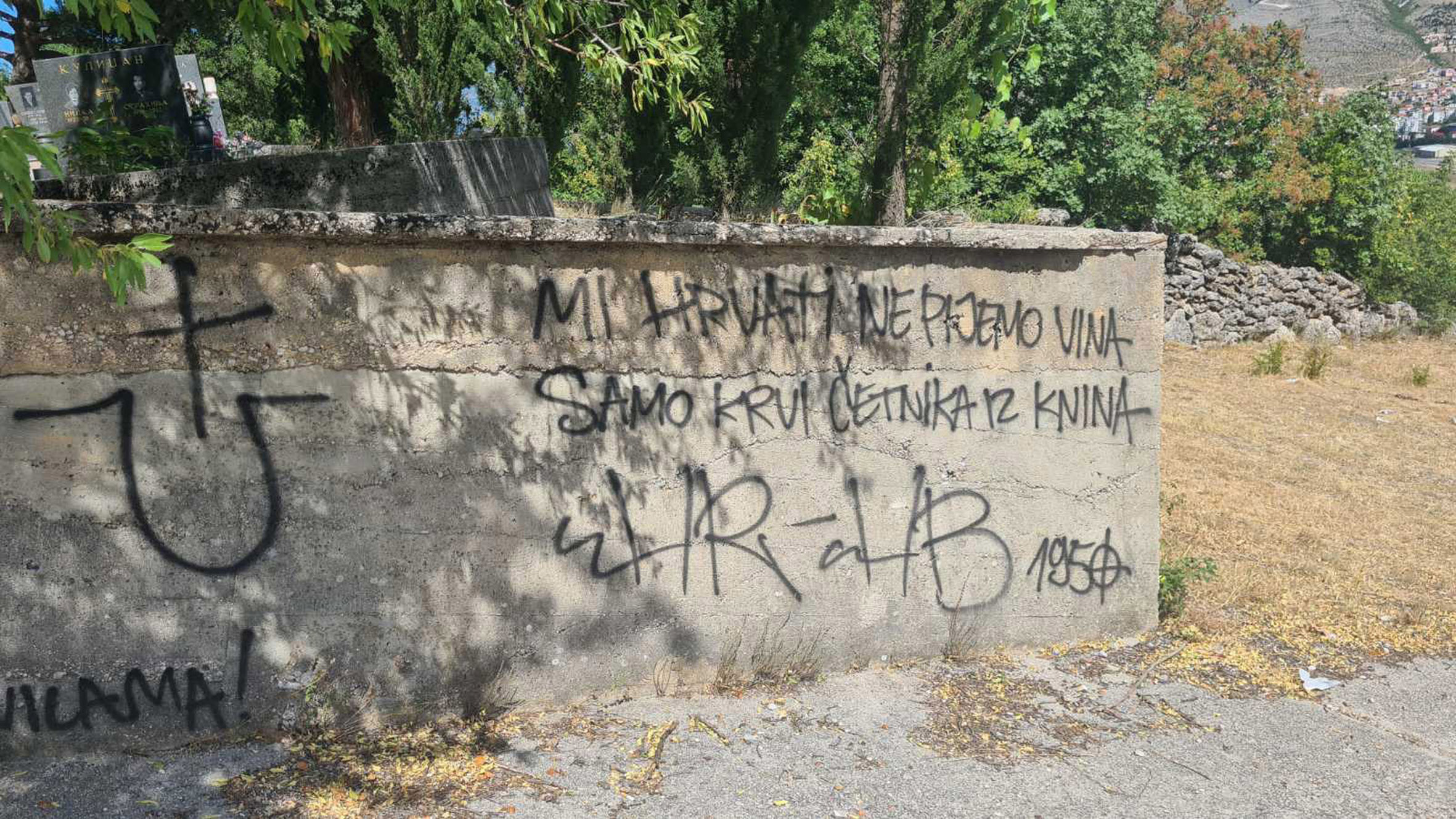 Podsetimo, groblje u Vihovićima, koje se nalazi u zapadnom delu grada, oskrnavljeno je tako što su na zidu oko groblja i ulaznoj kapiji ispisane jezive preteće poruke Srbima i ustaški simboli.