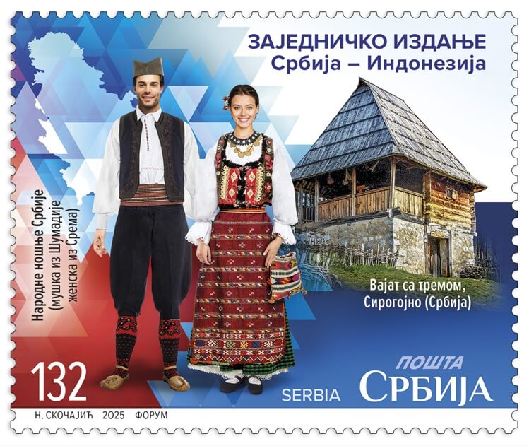 Na markama, vinjetama i prigodnom kovertu prikazani su autentični motivi tradicionalnih narodnih nošnji, arhitekture i muzičkih instrumenata Srbije i Indonezije. Srbija je predstavljena narodnim nošnjama iz Srema i Šumadije (XIX–XX vek), kao i vajatom sa tremom iz sela Alin Potok, delom Muzeja na otvorenom „Staro selo“ Sirogojno.