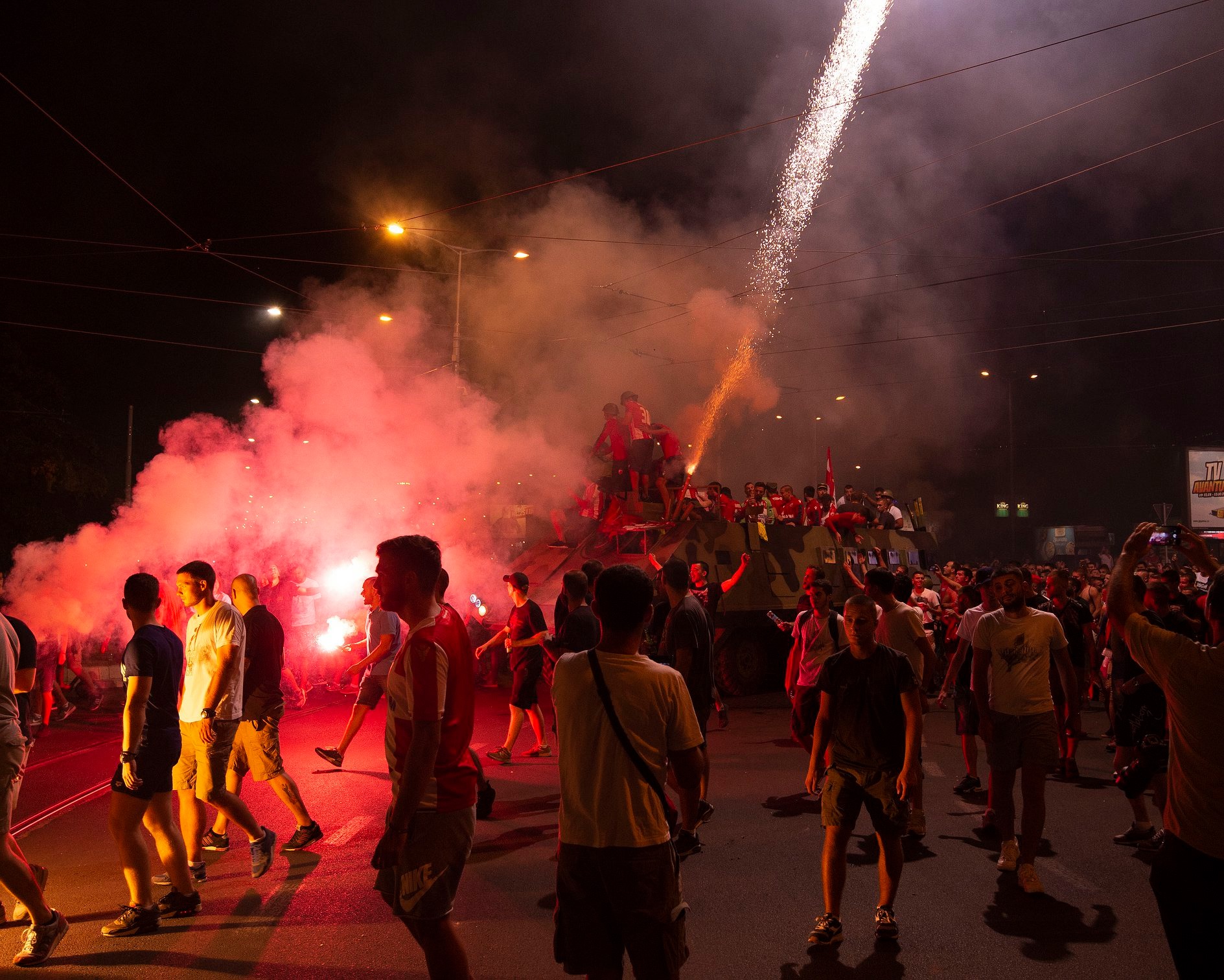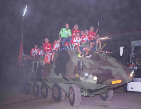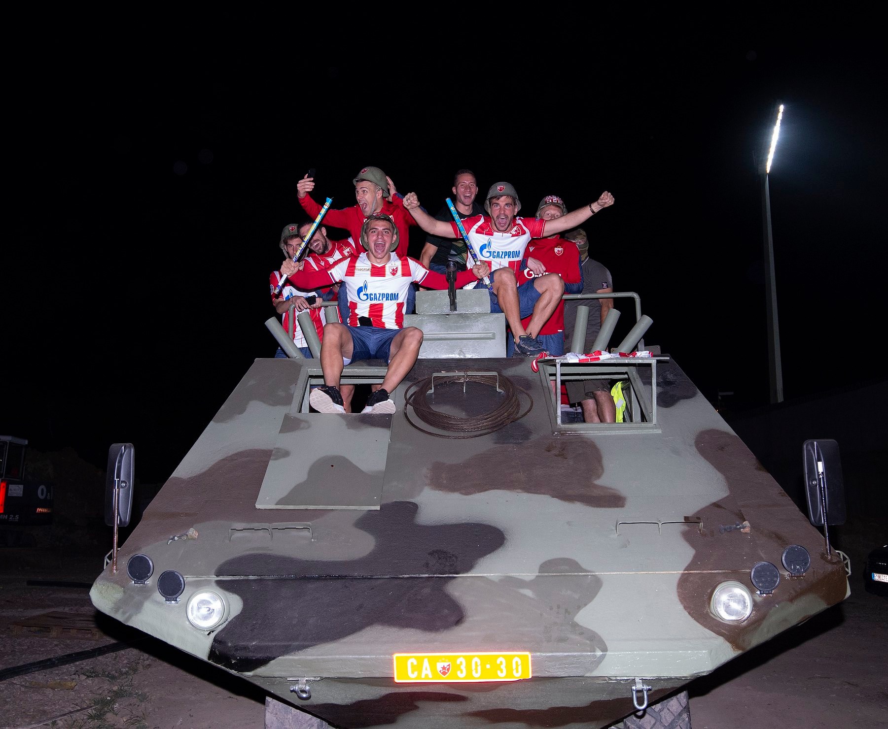 Igrači @crvenazvezdafk na tenku proslavljaju novi ulazak u @ChampionsLeague pic.twitter.com/fXYlTG0o2S— Vesti OnLine (@VestiOnLine) August 27, 2019