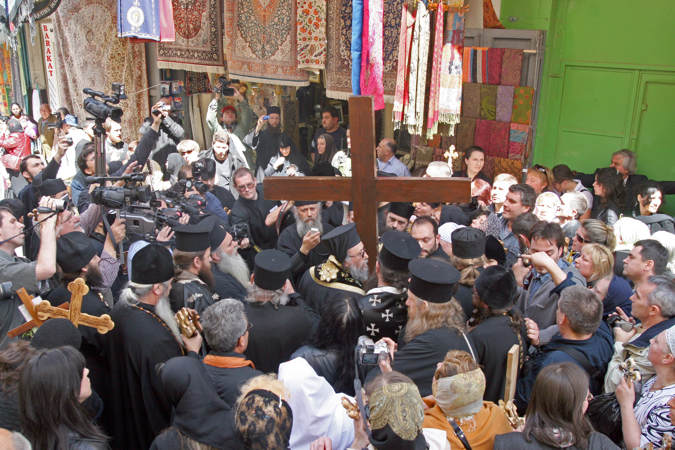 – Pešačenjem po Starom gradu Jerusalimu i kada krenemo ulicom Via Dolorosa (Put suza) idemo do Crkve Hristovog vaskrsenja pod čijom se kupolom i svodovima nalaze nekoliko crkava i kapela i to je Golgota, što predstavlja stenu na kojoj je raspet Isus Hristos. Zatim dolazi Ploča pomazanja, gde su žene Mironosice pomazale Hristovo telo mirisnim uljima, potom dolazi Kuvuklija, gde se nalazi Hristov grob i preko puta ikonostas Crkve Hristovog vaskrsenja. Dalje se nalazi Kapela Vozdviženja Časnog krsta. Pored pravoslavne i rimokatoličke, i druge hrišćanske crkve imaju svoj bogoslužbeni prostor, tako da se često u hramu preklapaju bogosluženja – priča Hadži Marko Vujičić.