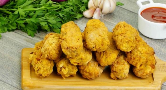 Dobro promešati i ostaviti u frižideru da se marinira nekoliko sati. Pleh podmazati uljem i posuti kukuruznim brašnom. Piletinu uvaljati u prezle i slagati u pleh.
