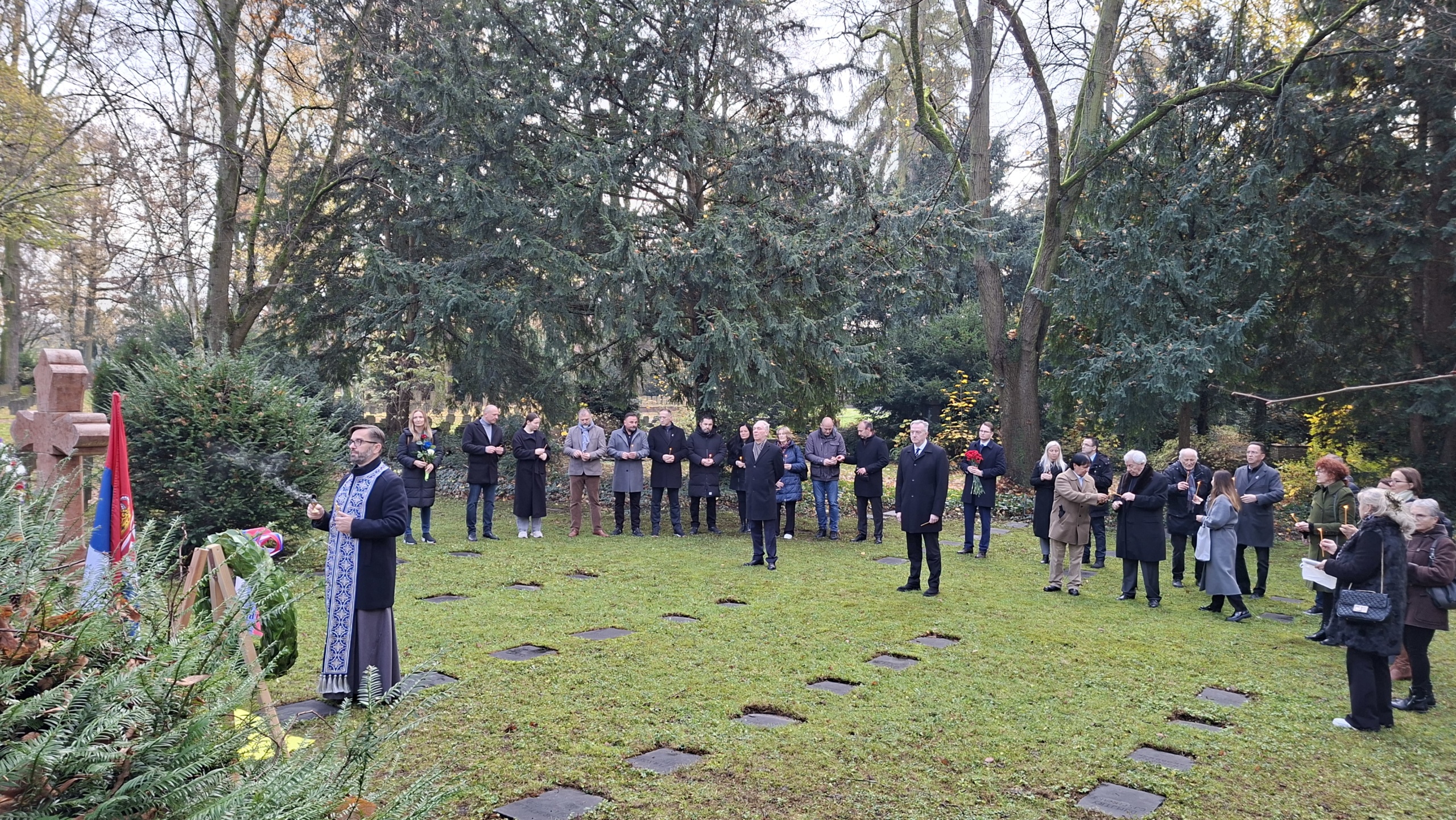 Nakon parastosa, vence na spomen-krst su položili generalni konzul Republike Srbije u Frankfurtu Aleksandar Đurđić i generalni konzul Ruske Federacije u Bonu Oleg Krasnicki.