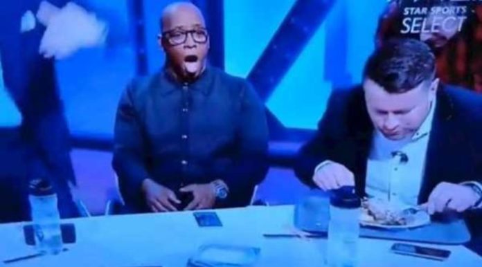 Dok su kolege u studiju zinule na golčinu Mohameda Salaha protiv Čelsija, bivši golman Njukasla i Mančester Sitija je tokom prenosa uhvaćen usred obroka.