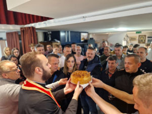 “Mi kao udruženje, gledamo da sarađujemo i izlazimo u susret maksimalno koliko je moguće. Većina su članovi i našeg udruženja “Sveti Sava”, takođe i mi sa naše strane se uključujemo i učestvujemo u prikupljanju sredstava koje oni raspodeljuju. Tu je svakako i naš sveštenik otac Marko Knežević, koji doprinosi da sam čin lomljenja kolača i biranja novih kumova bude uzvišen, baš kako nalažu vera i slavski običaj. Srećni im slava i petnaestogodišnjica postojanja i uspešnog rada, i želim im uspeh u daljem radu”, istakao je Milićević.