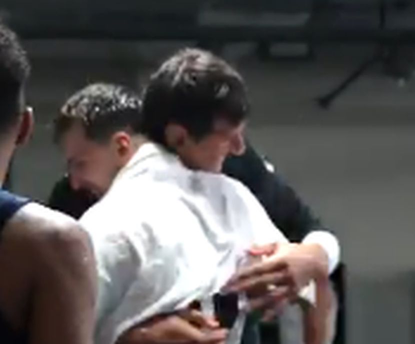 Tako su ga, predvođeni srpskim centrom Bobanom Marjanovićem, čim je ušao prvo dobro ispolivali vodom, što je u NBA svetu znak da je neko bio najbolji, da bi se onda Slovenac i Srbin prijateljski izgrlili.