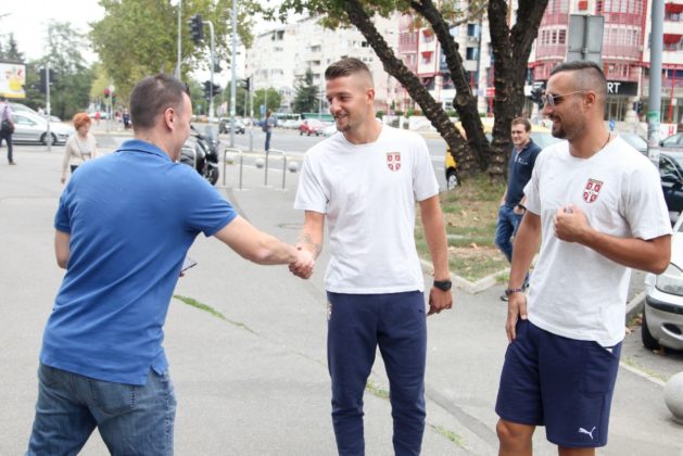 Reprezentativci Srbije Sergej Milinković-Savić i Nemanja Maksimović su obradovali prolaznike na Novom Beogradu, dodelivši besplatne karte za utakmicu kvalifikacija za EURO 2020 sa Portugalom, kao i nacionalne dresove.