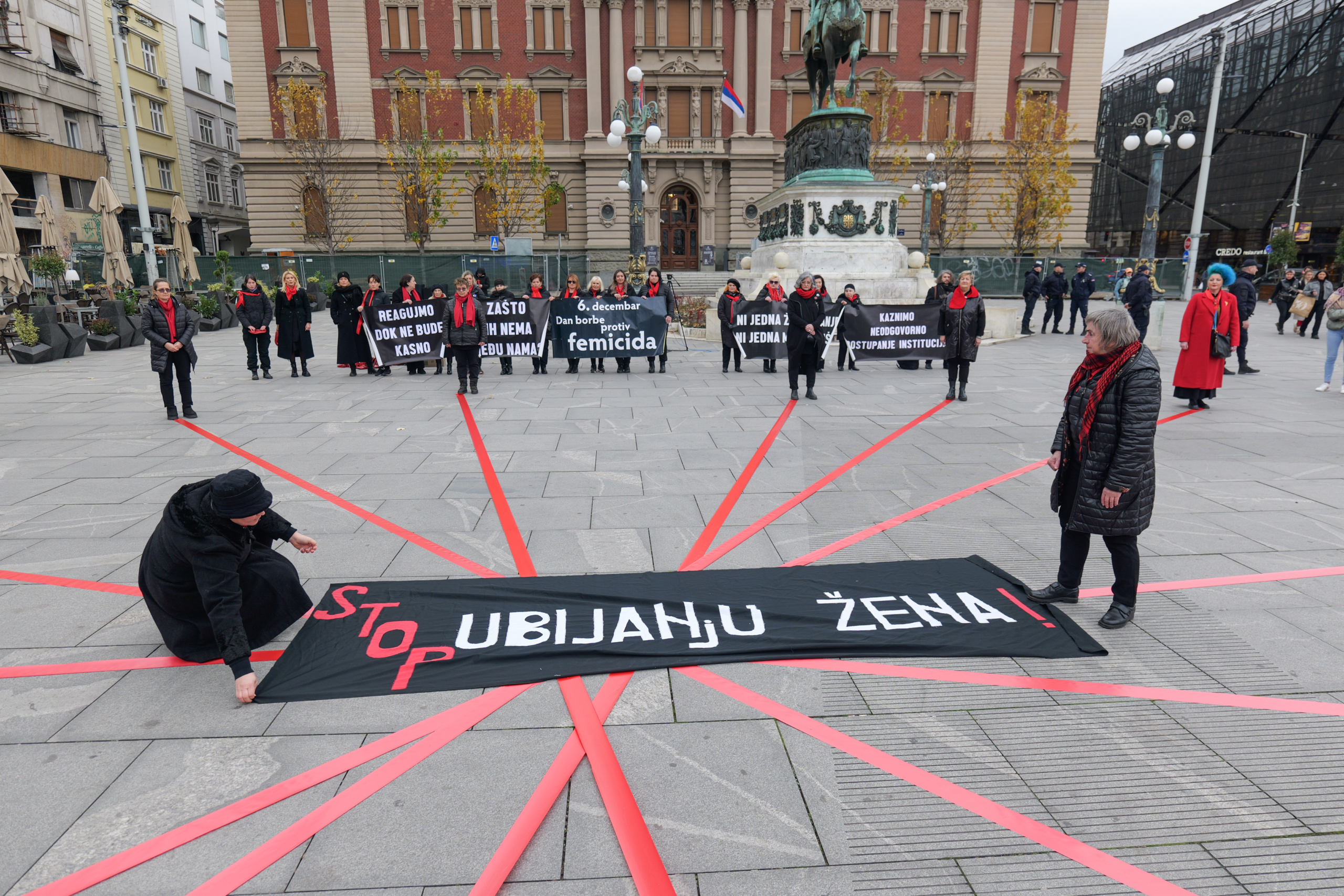 Autonomni ženski centar i Žene u crnom organizovale su danas uličnu akciju “Sprečimo femicid zajedno” na Trgu republike u Beogradu, povodom Međunarodnog dana borbe protiv femicida.