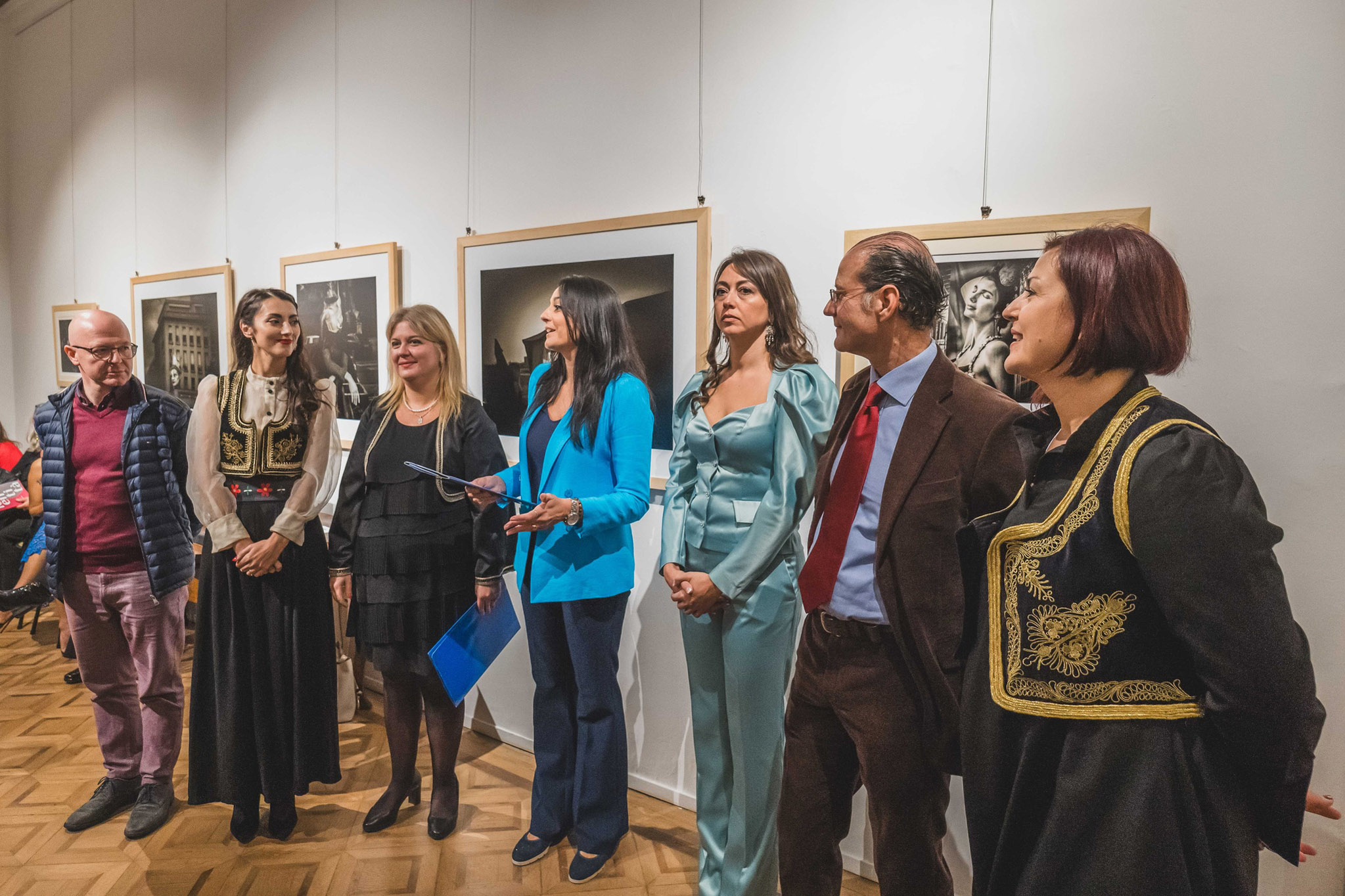 Tri ambasadorke Srbije – Jelena Borovčanin, Ivana Bukovac i Marija Marković, dominirale su umetničkom scenom u palati Pizani Revedin na svečanom otvaranju, u prisustvu brojne publike, kojoj se ispred naše zemlje obratila Ivana Stojiljković, generalna konzulka Republike Srbije u Trstu, ističući značaj izložbe koja govori o identitetu i snažnoj sponi “između onog tamo i ovog ovde”. Goste su po tradicionalnom srpskom običaju, pogačom i solju, dočekali mladi članovi udruženja Sloga iz Basana del Grapa u narodnoj nošnji.