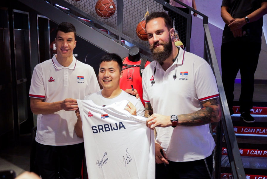 Na poziv gospodina Šua, vlasnika kompanije PEAK koja već godinama uspešno sarađuje sa Košarkaškim savezom Srbije i čiju opremu nose sve naše reprezentativne selekcije, generalni sekretar Dejan Tomašević i igrači Miroslav Raduljica i Vladimir Lučić posetili su prodavnicu poznatog proizvođača sportske opreme u centru Šenjanga.