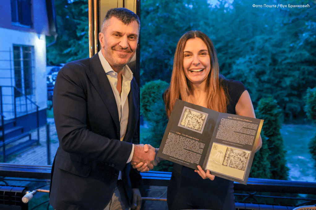 Đorđević i rediteljka Vejd potpisali su zatim koverte prvog dana koje će sa porukom i prigodnom markom “Srbija – SAD: 100 godina Holivuda”, biti poslate na adresu Akademije filmskih umetnosti i nauka i istaknutih umetnika u Holivudu, prvenstveno glumicama, rediteljkama, scenografkinjama i drugim filmskim umetnicima, u znak zahvalnosti za doprinos razvoju filmske umetnosti i stvaranju istorije Holivuda.