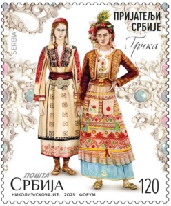 Grčku na markama predstavlja svadbena nošnja s Krfa i ženska nošnja iz Vlasine.