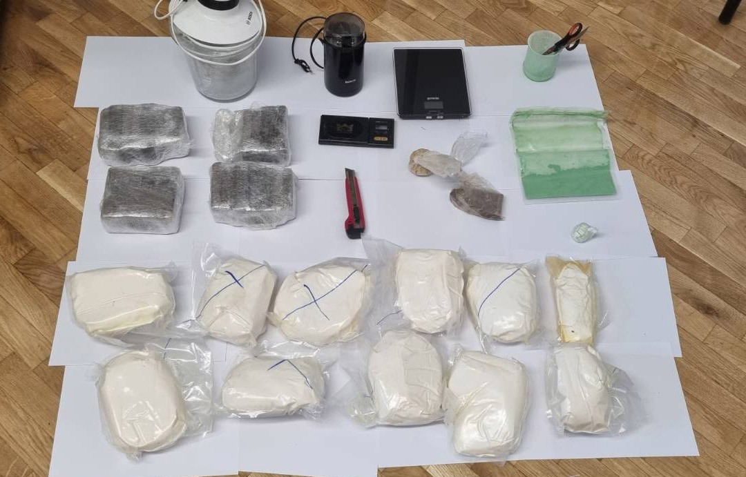 Policija je pretresom stana u kojem obojica neprijavljeno borave, pronašla paketić sa biljnom materijom za koju se sumnja da je marihuana, četiri paketa sa oko 120 grama smese za uvećanje mase droge, vagicu za precizno merenje, novac i četiri mobilna telefona.