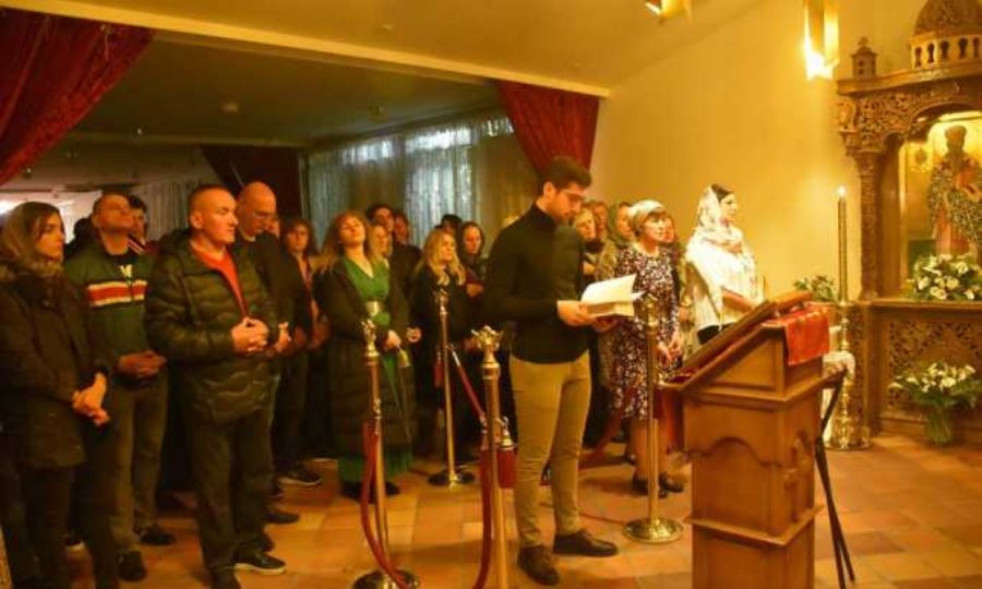 Vaskršnje jutrenje započelo je litijom sa trokratnim ophodom oko crkve pre ponoći, a služio je paroh Aleksandar Samardžić.