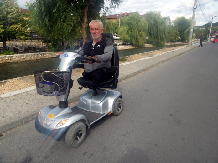 Hidajet Pljakić je bez obe noge, imao je ovakvo “vozilo”, ali mu se davno pokvarilo, sada ponovo može sam da ode do apoteke i lekara, hvala dobrotvoru – ističe Muratović.