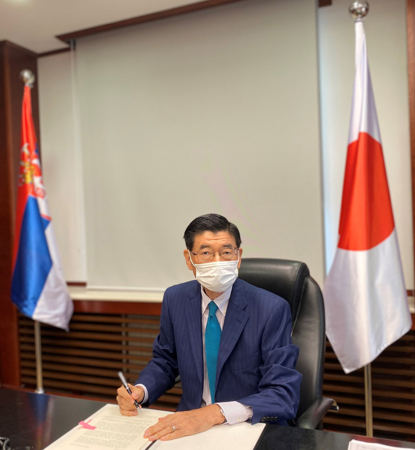Vlada Japana će obezbediti ukupan iznos od 100 miliona jena (oko 820.000 evra) Vladi Republike Srbije sa ciljem jačanja zdravstvenog sistema zemlje u borbi protiv zaraznih bolesti, uključujući COVID-19, kroz nabavku medicinske opreme. Razmena Nota za ovu donaciju je potpisana od strane Nj. E. g. Đunićija Marujame, ambasadora Japana u Republici Srbiji i Nj. E. dr Zlatibora Lončara, ministra zdravlja Republike Srbije.